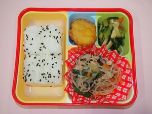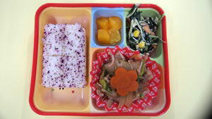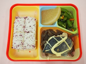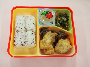 コロナウイルス感染拡大防止のため今年度の遠足は中止となりましたが、幼稚園の運動場で遠足ごっこをして楽しみました。「外で食べるの楽しいね♪」、「おいしい~!」といつもと違う昼食の時間に子ども達はとても嬉しそうにしていました。