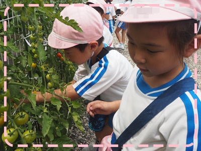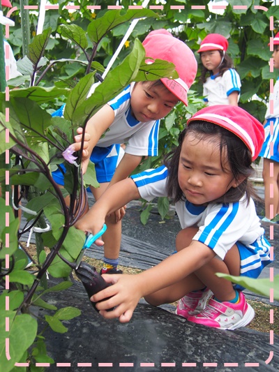 幼稚園で育てているいちごが赤くなり、各学年収穫を楽しみました。畑に行くと「先生、赤いいちご見つけた!」「めっちゃ大きいのあったで!」と目をキラキラと輝かせていました☆自分たちで収穫したいちごは、水で綺麗に洗い、美味しく食べました!次の日、「今日もいちご行く?」と楽しみに登園する子がたくさんいました‼