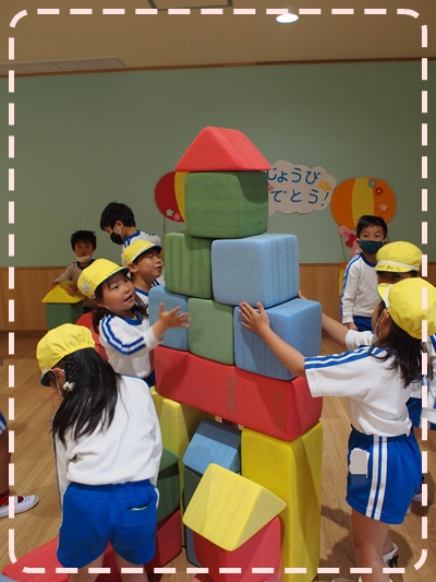 保育室に戻ると『いつも楽しく遊んでくれてありがとう!』の気持ちを込めた幼稚園からのプレゼントがあり、子ども達は大興奮☆